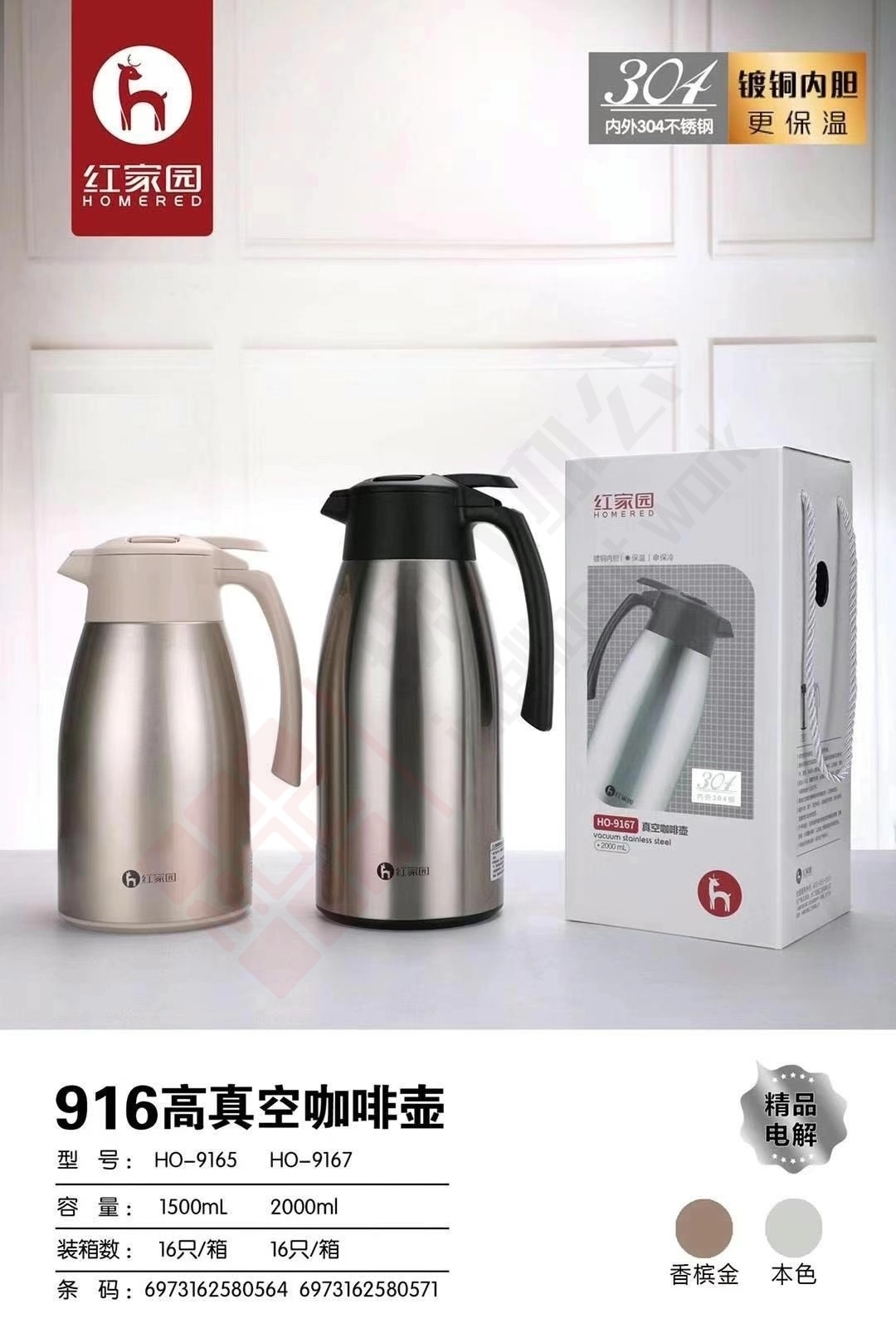红家园 热水保温壶 HO-9167 2L 304不锈钢