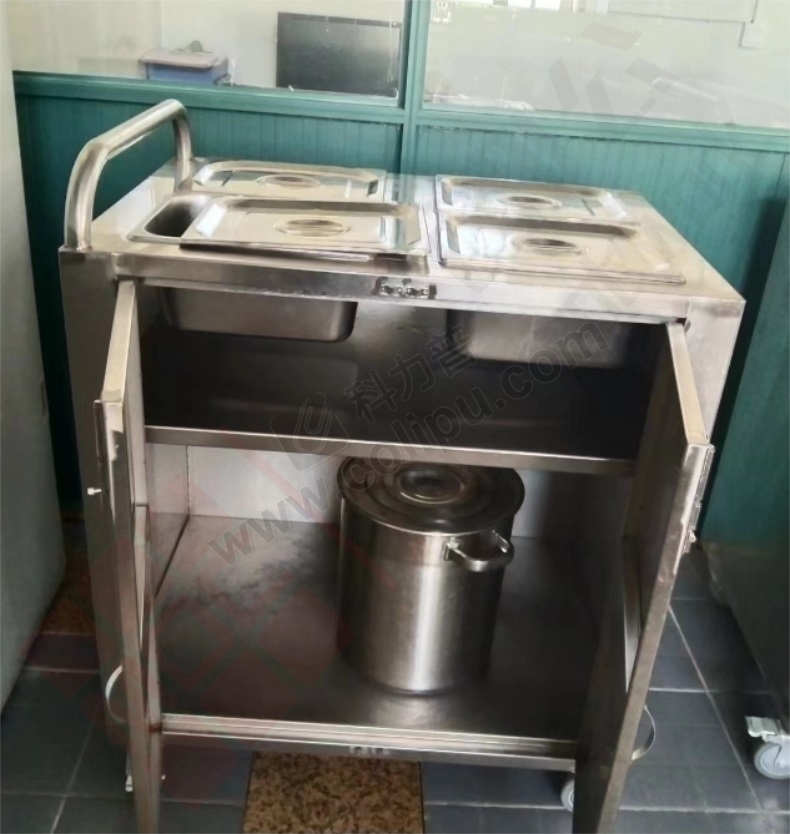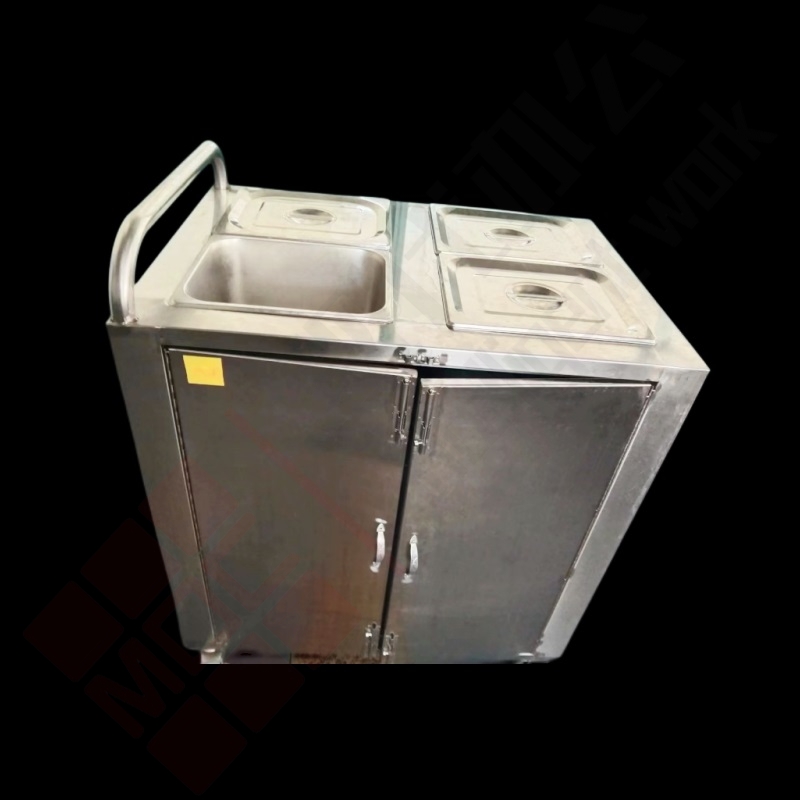 平顺 封闭式送餐车(定制) 850*520*890 配4只不锈钢份数池,下层可以放饭盘、消毒篮。下配万向轮4只