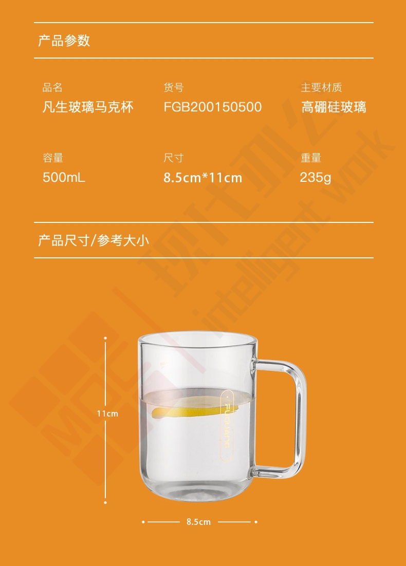 富光 玻璃杯 凡生500ml 带刻度水杯