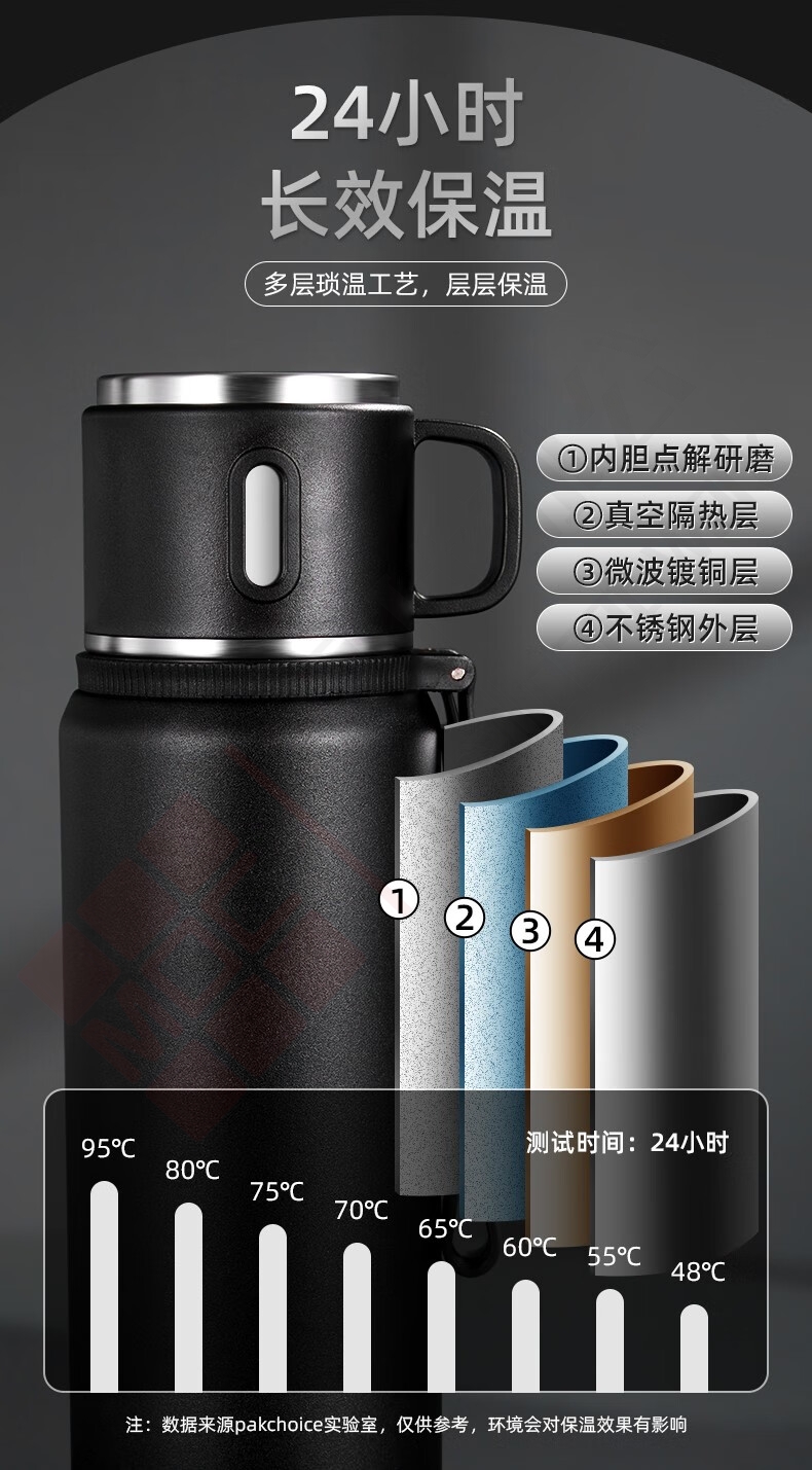 PAKCHOICE 保温杯 黑色800ml-茶水分离