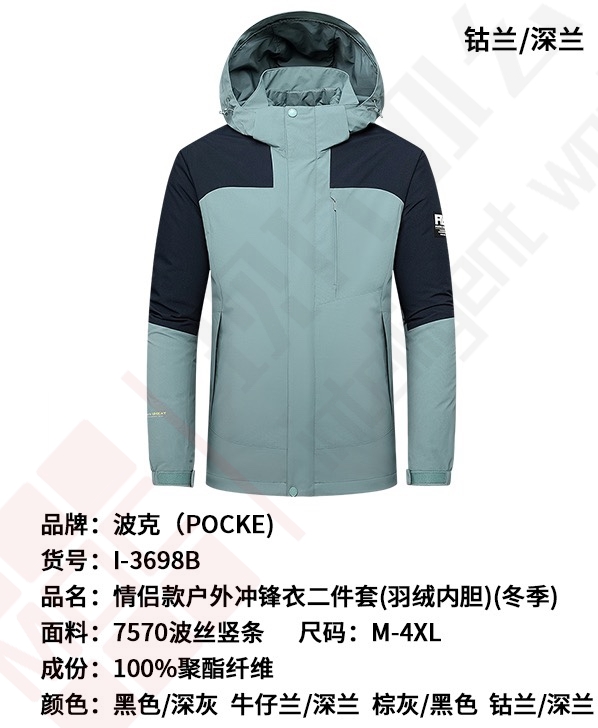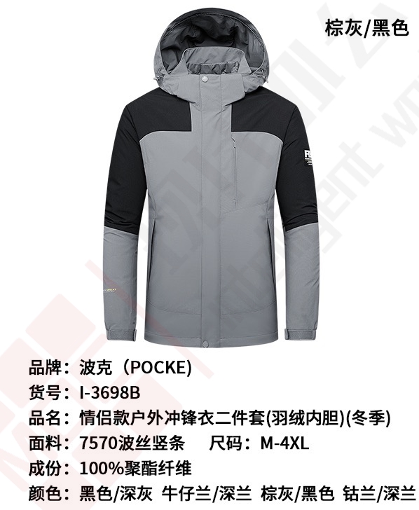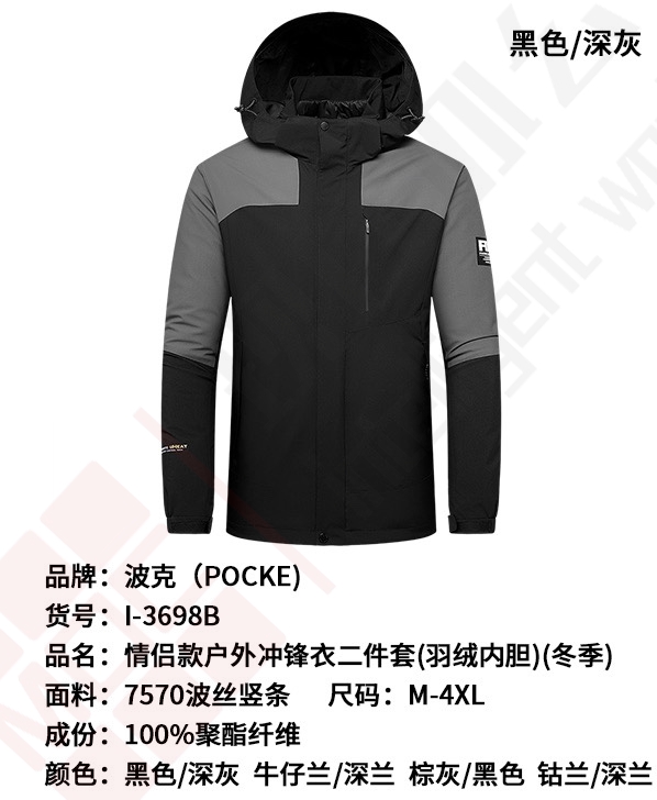 波克 2022羽绒可脱卸三穿冲锋衣防水防污户外服 3698B 颜色尺寸可备注