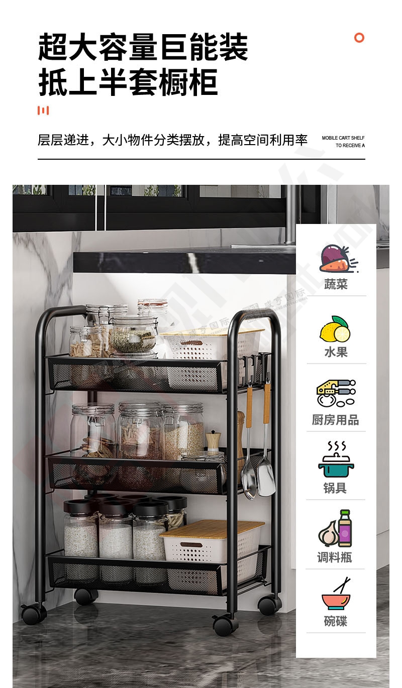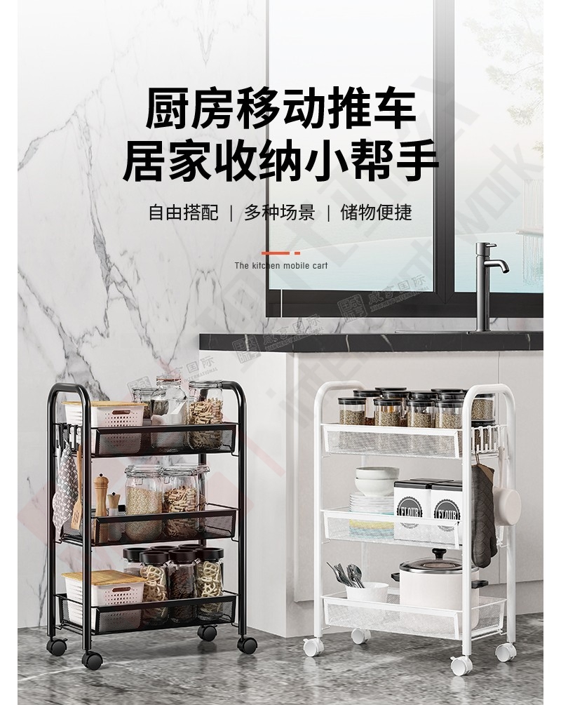 溢彩年华 三层移动收纳架带轮滑 F36 77*43*30CM