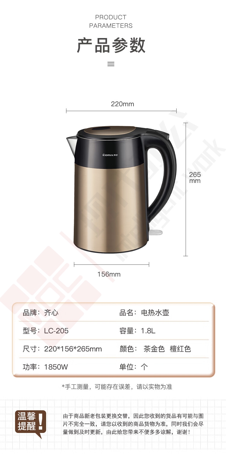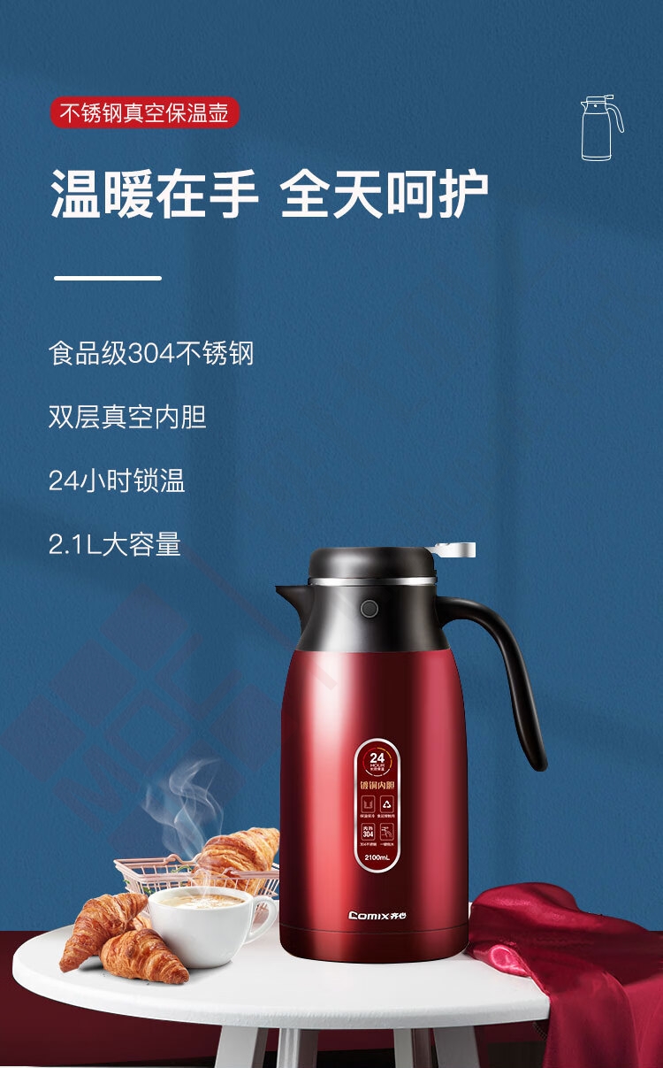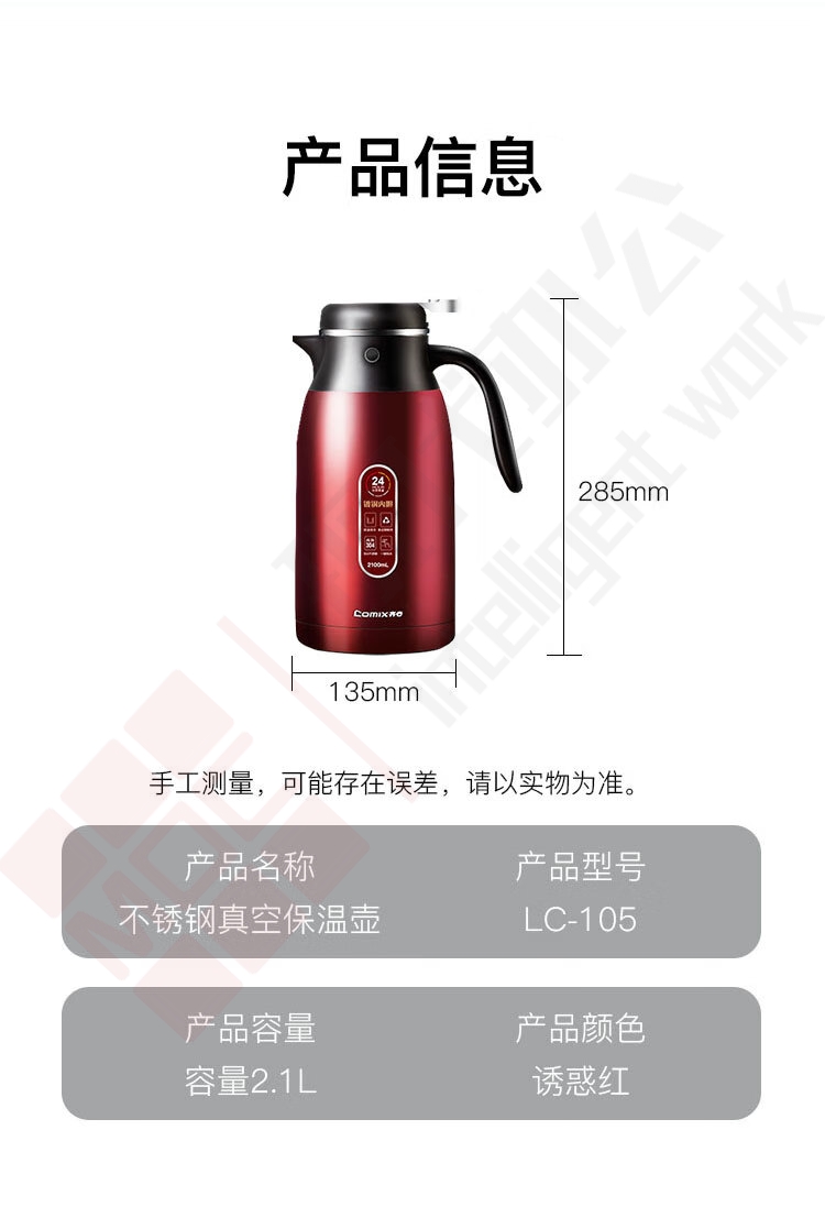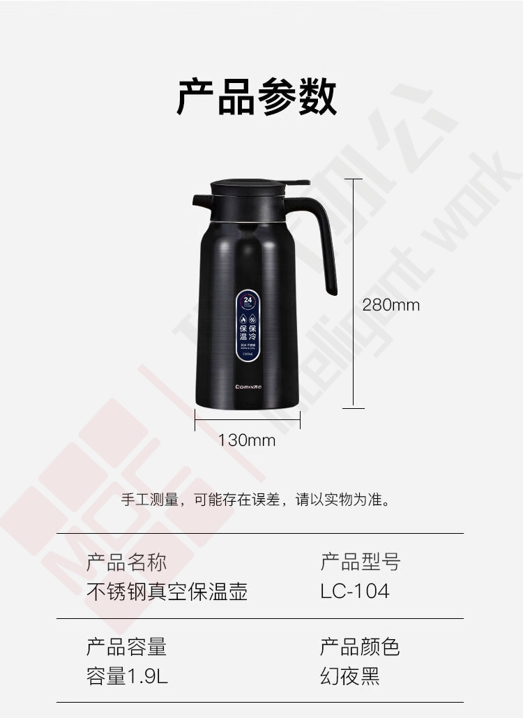 齐心 不锈钢保温壶 LC-104 幻夜黑 1900ML